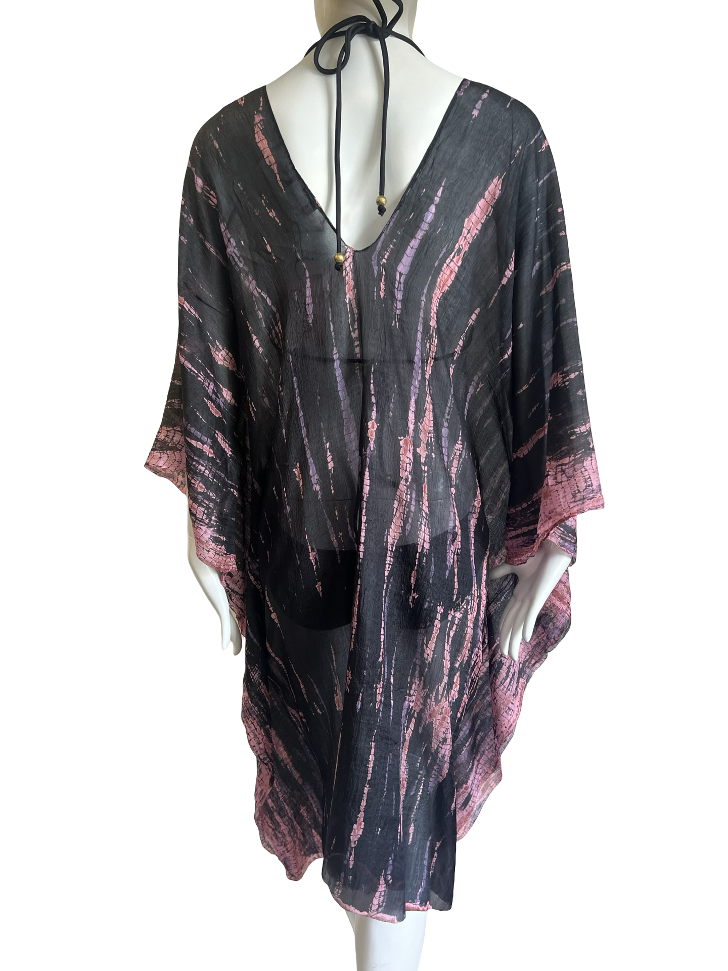 Experience the effortless elegance of our Knee Length V-Neck Kaftan. Crafted from 100% fine silk tabi, this piece is more than just a cover-up—it’s a wearable work of art. Every kaftan features our signature hand-blocked Ikat print, meticulously created by hand so that no two pieces are exactly alike.