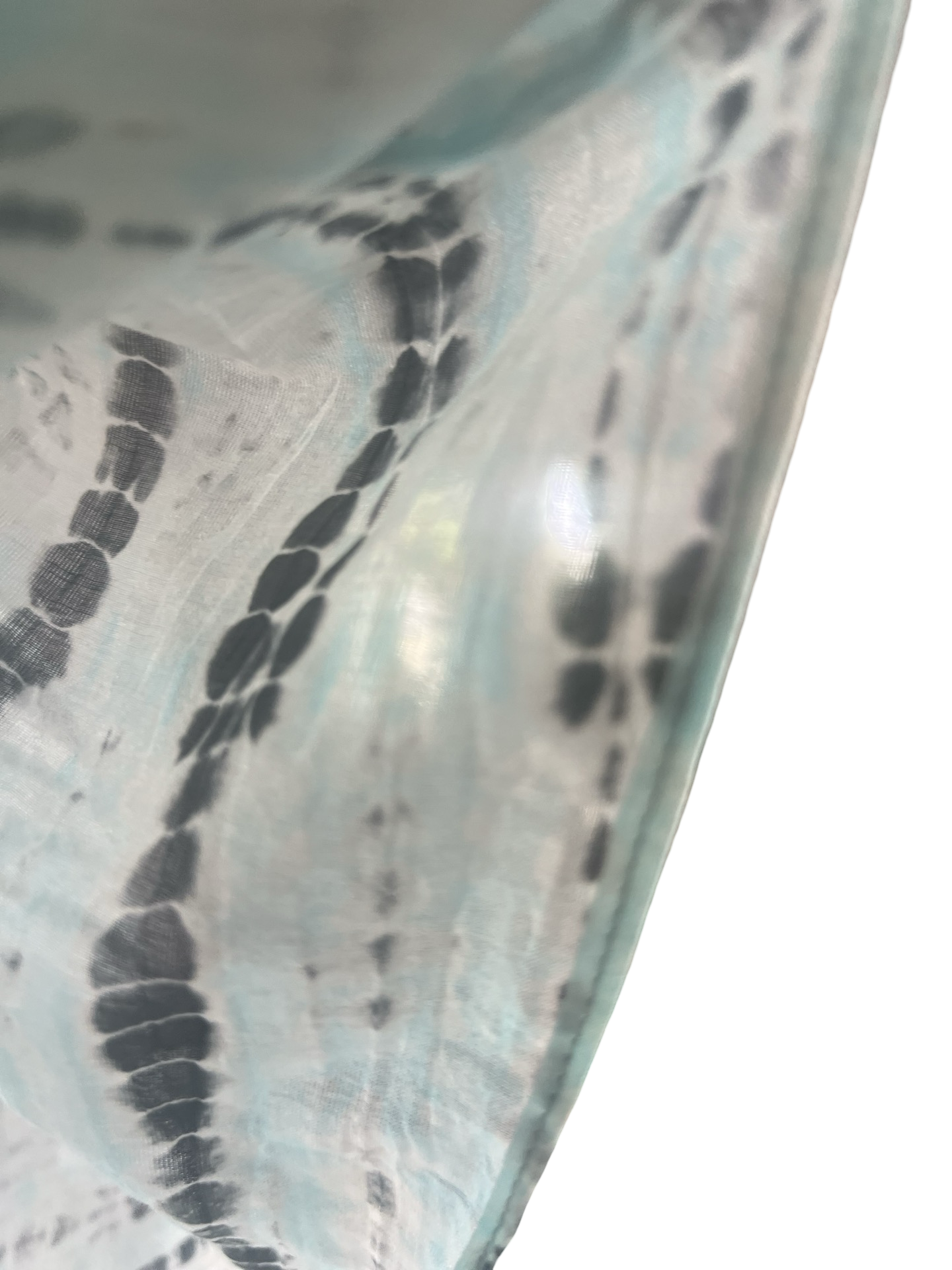 - Print Process: 100% hand tie dye and every item is made by hand and a one of a kind item & limited items will be made in this style. This style is a light fresh Aqua with blk and white streaks.