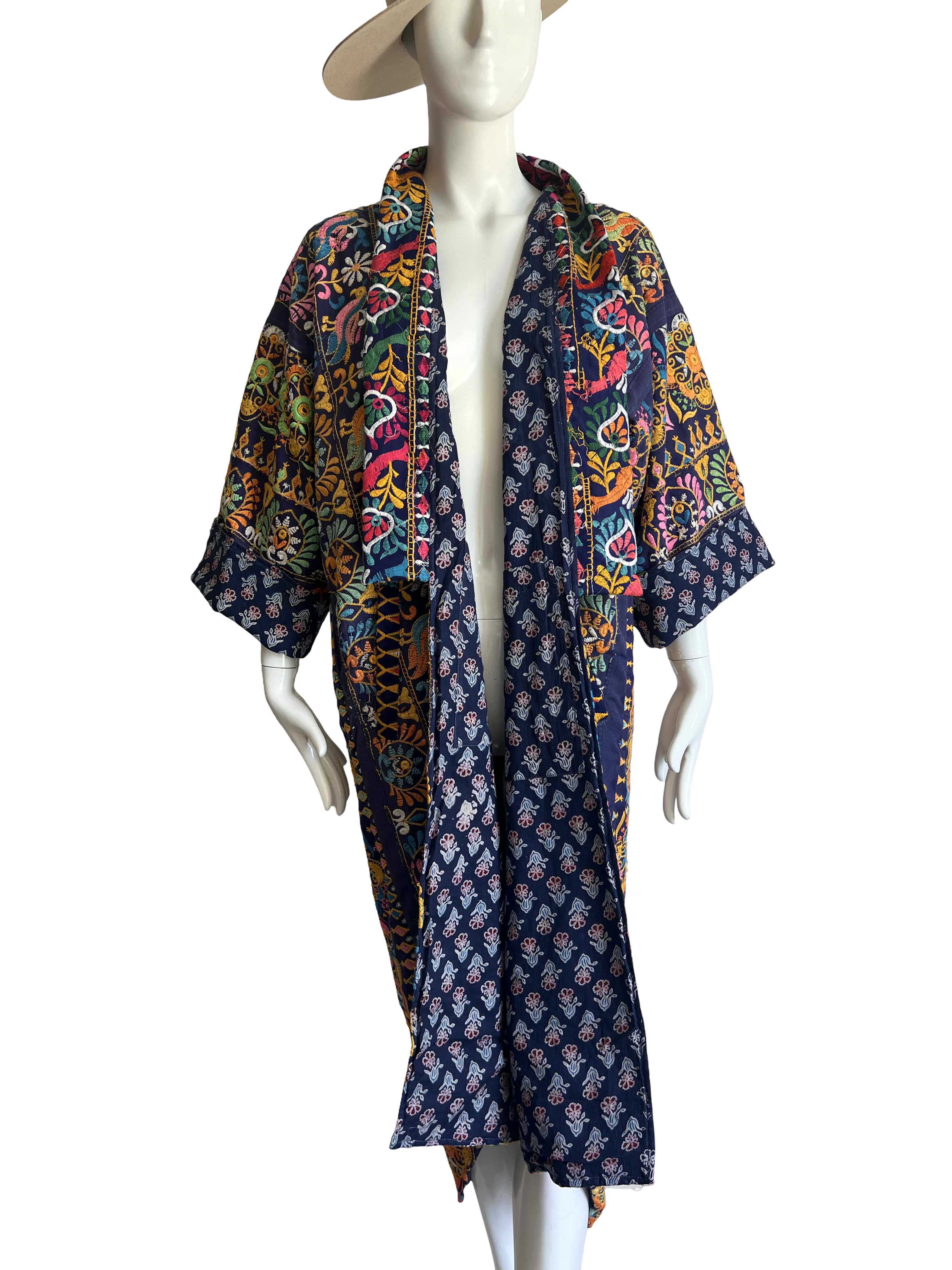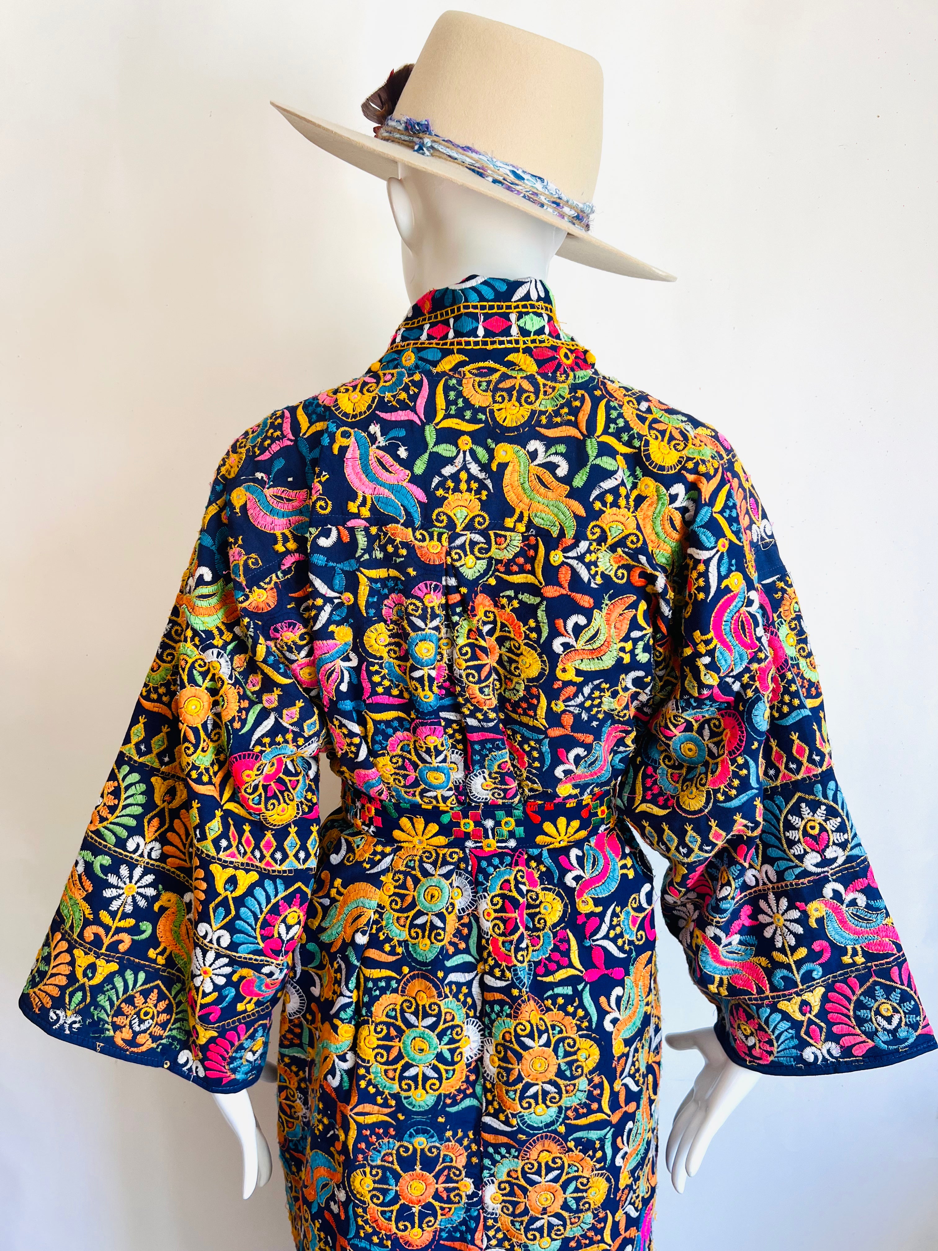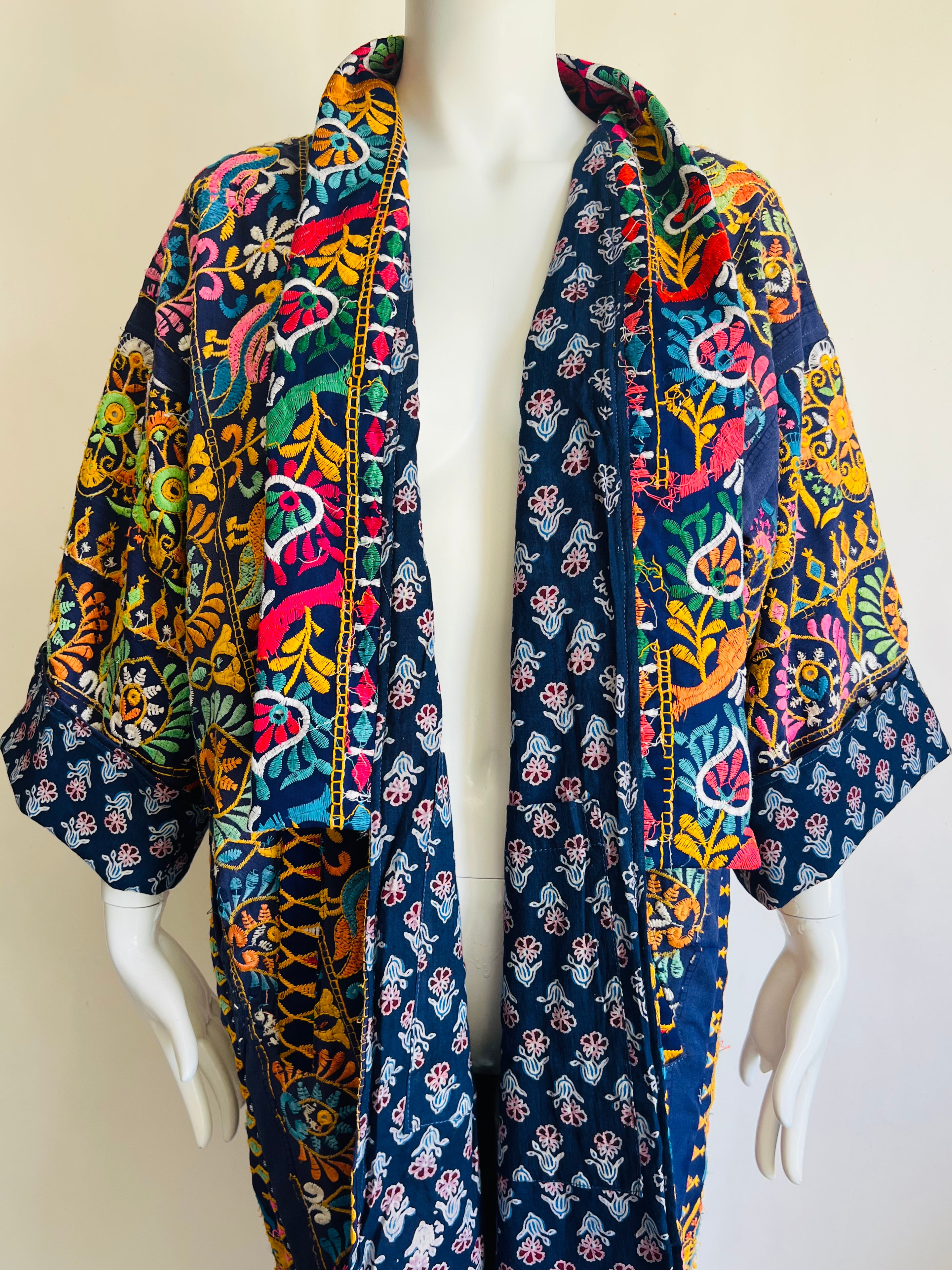 Our “Embroidered Gypset Coat” is a unique, one of a kind coat. The coats are made from hand made embroidered vintage fabric. They are works of art, made from carefully selected vintage fabrics selected by us and the coats are lined with soft hand printed cotton fabric.