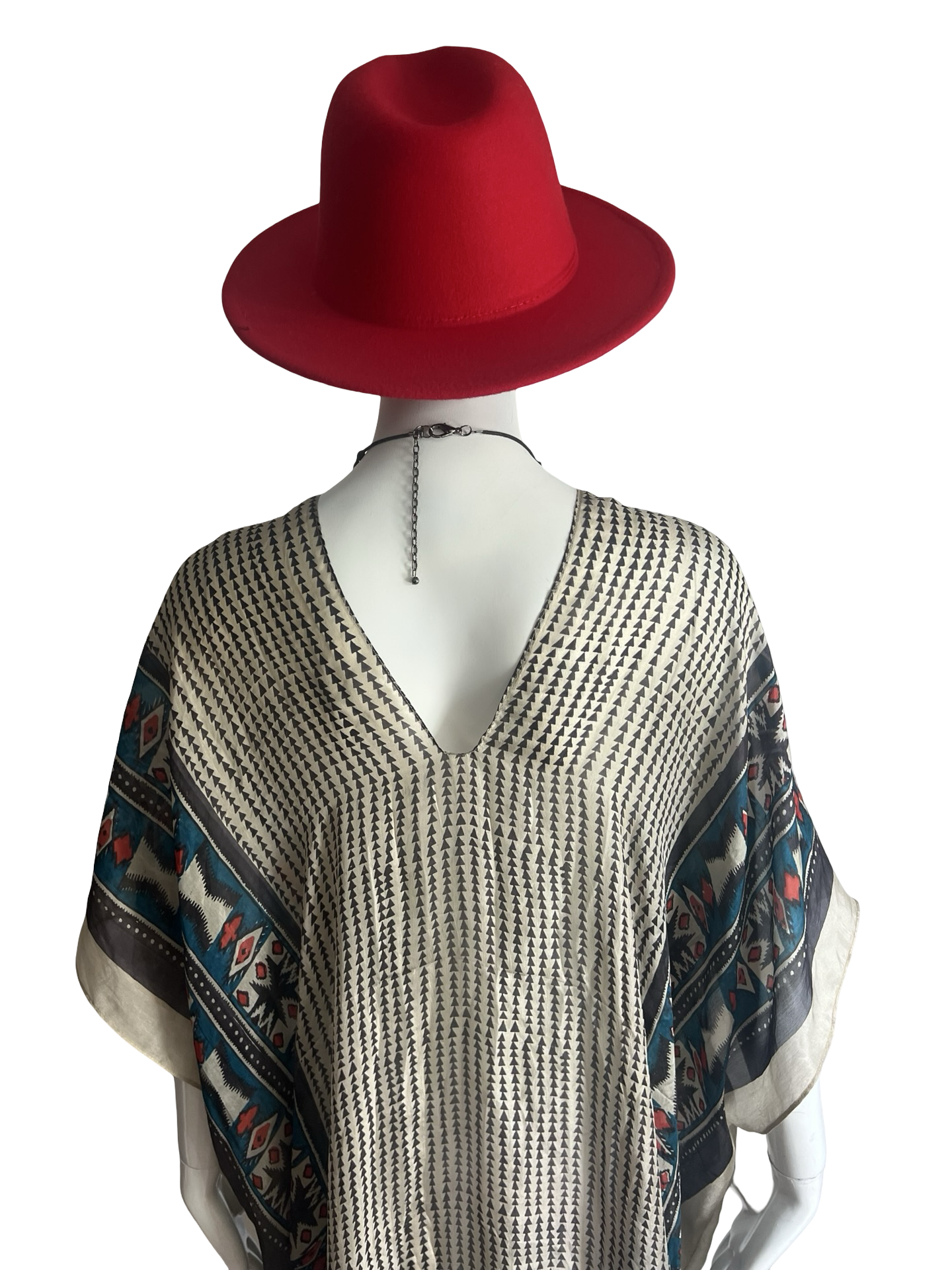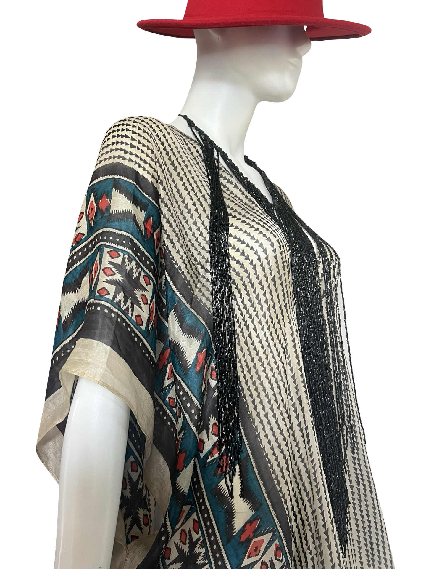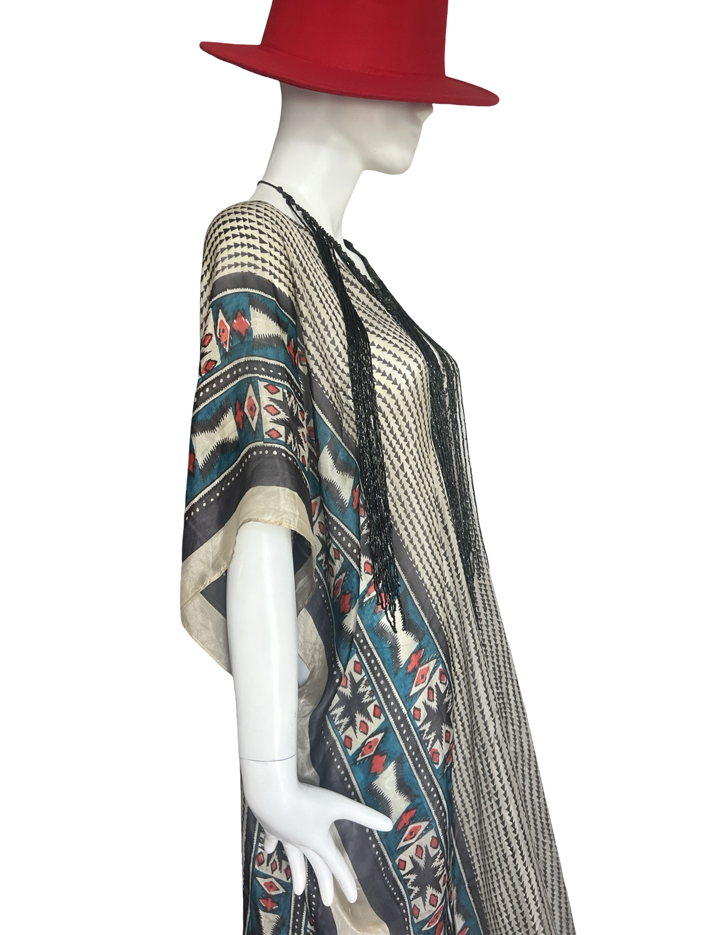 Our "Long V-Neck Kaftan" in our beautiful Silk Tabi quality is an easy but elegant kaftan to throw on and go. V-neckline front and back and side slits on both sides about 20" high. Great over swimwear or worn over a slip dress for day. The kaftan is a One Size fits all and can accommodate XS-2XL.