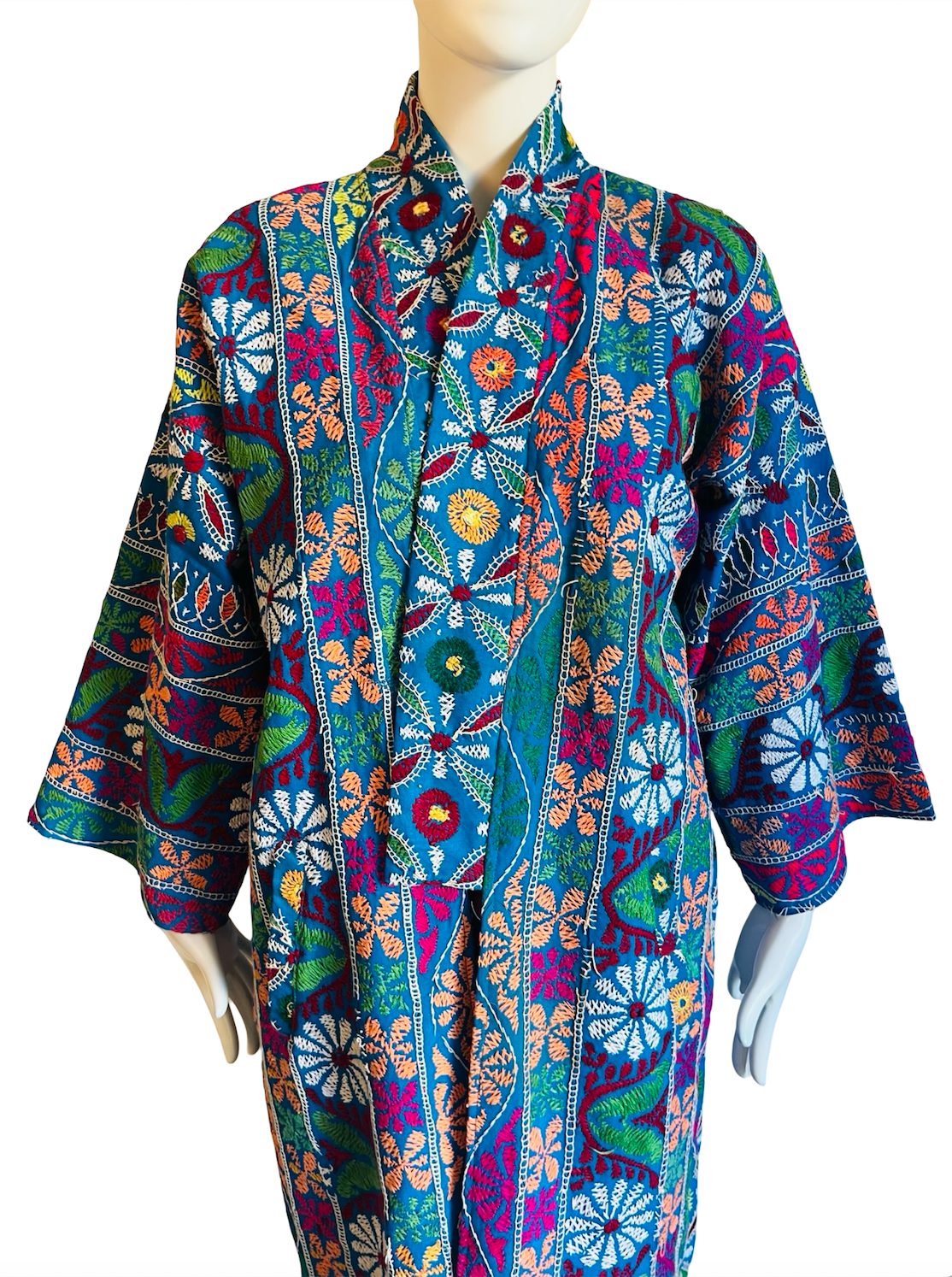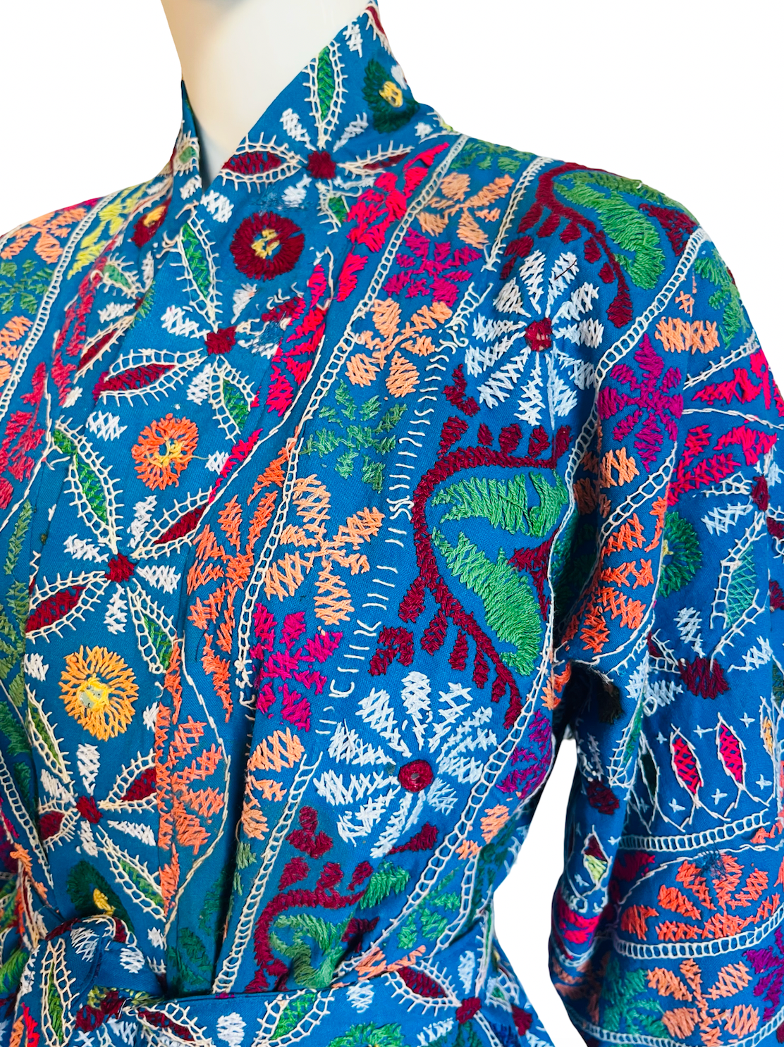 Our “Embroidered Gypset Coat” is a unique, one of a kind coat. The coats are made from hand made embroidered vintage fabric. They are works of art, made from carefully selected vintage fabrics selected by us and the coats are lined with soft hand printed cotton fabric.