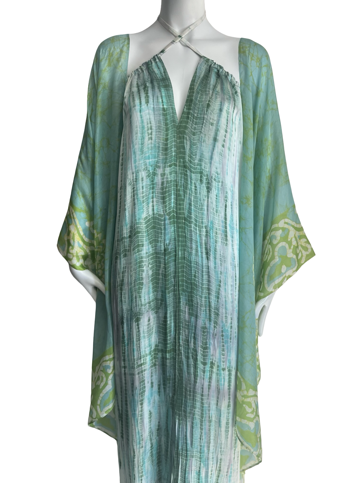 Crafted from the finest 100% Silk Charmeuse, each dress is individually hand tie-dyed, ensuring that no two pieces are exactly alike. We’ve treated the silk with a specialized wash to achieve an incredibly soft, "lived-in" hand-feel that retains the luminous sheen of charmeuse while gaining a poetic, liquid flow.