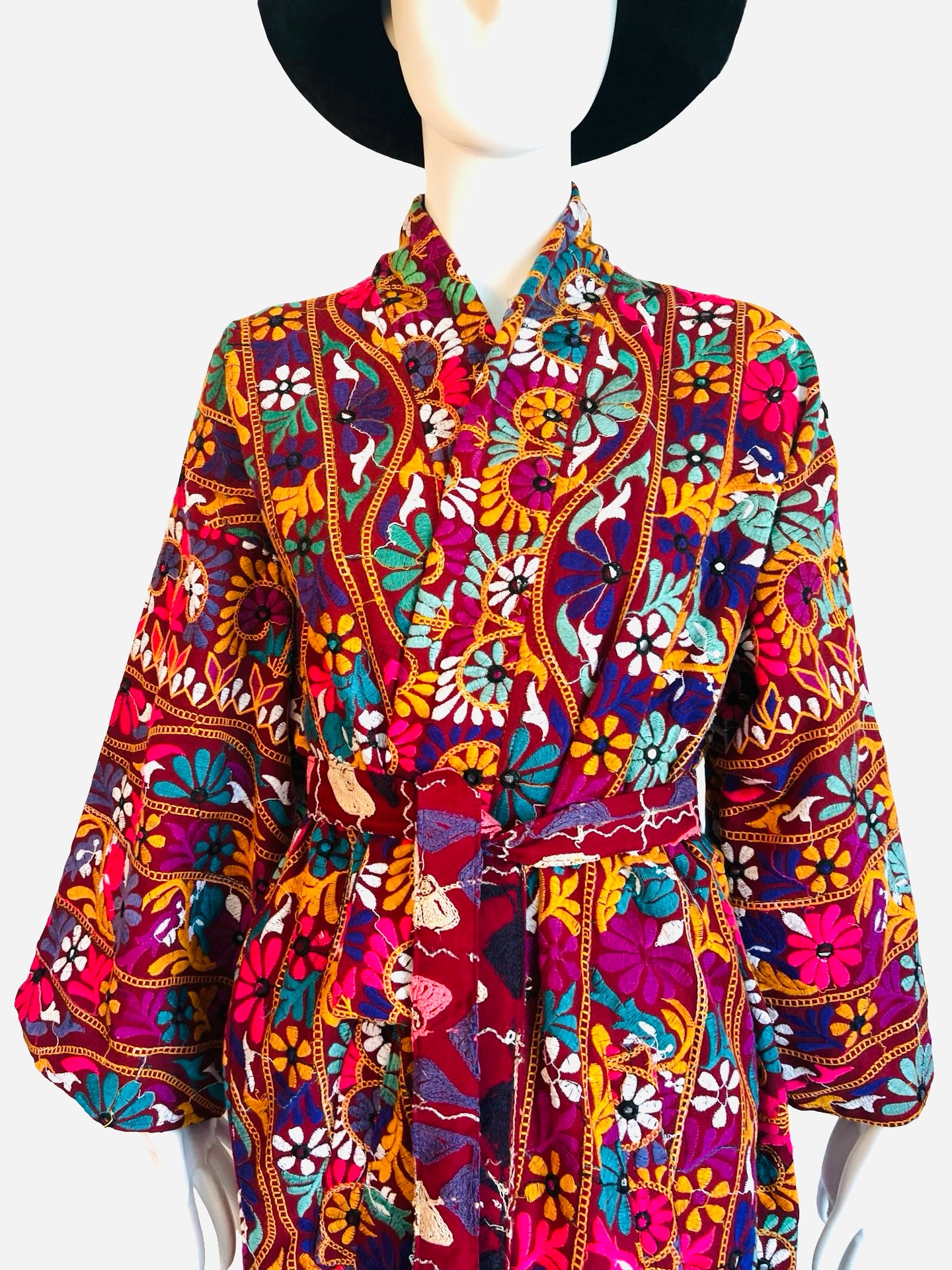 Our “Embroidered Gypset Coat” is a unique, one of a kind coat. The coats are made from hand made embroidered vintage fabric. They are works of art, made from carefully selected vintage fabrics selected by us and the coats are lined with soft hand printed cotton fabric.