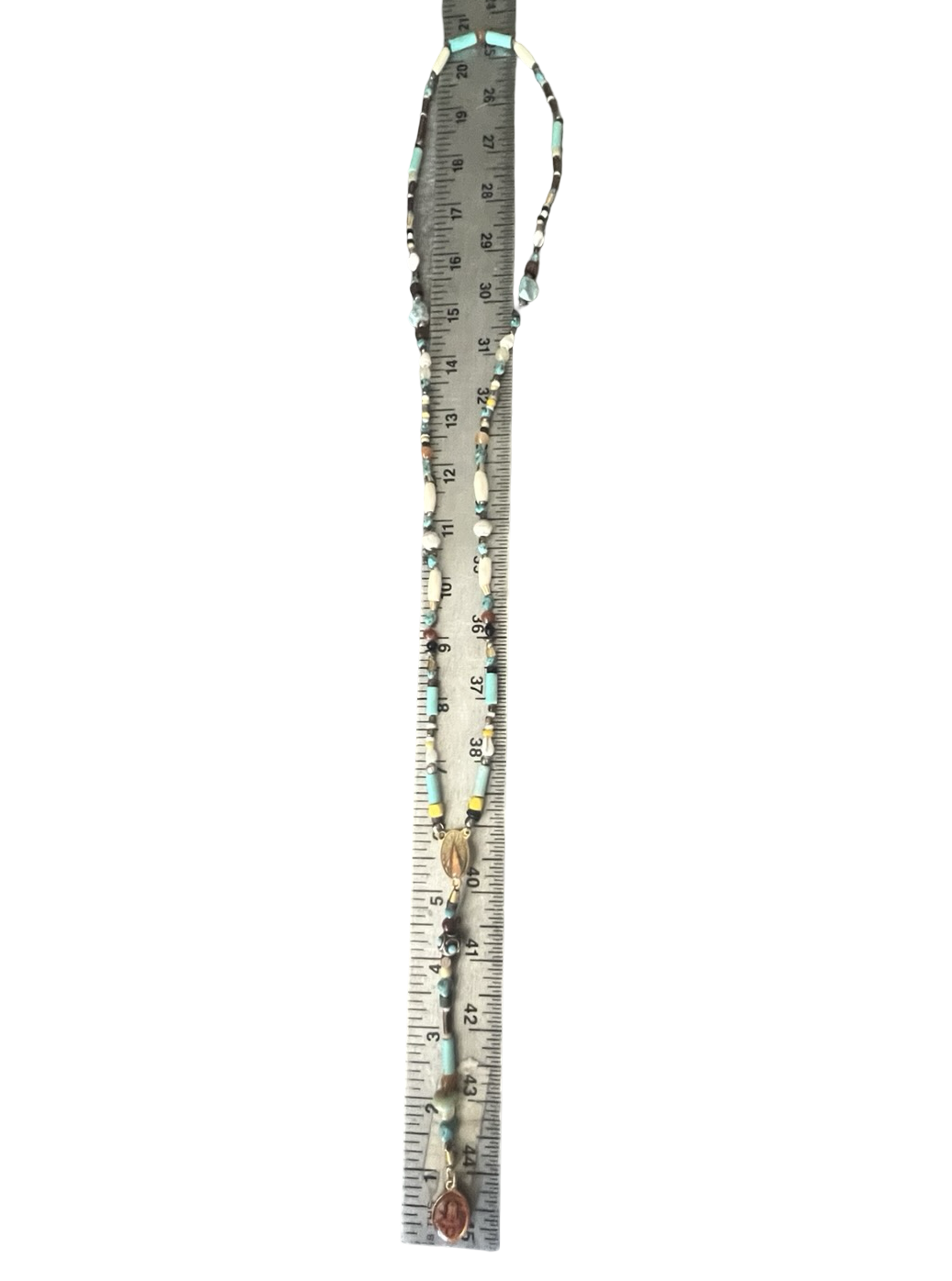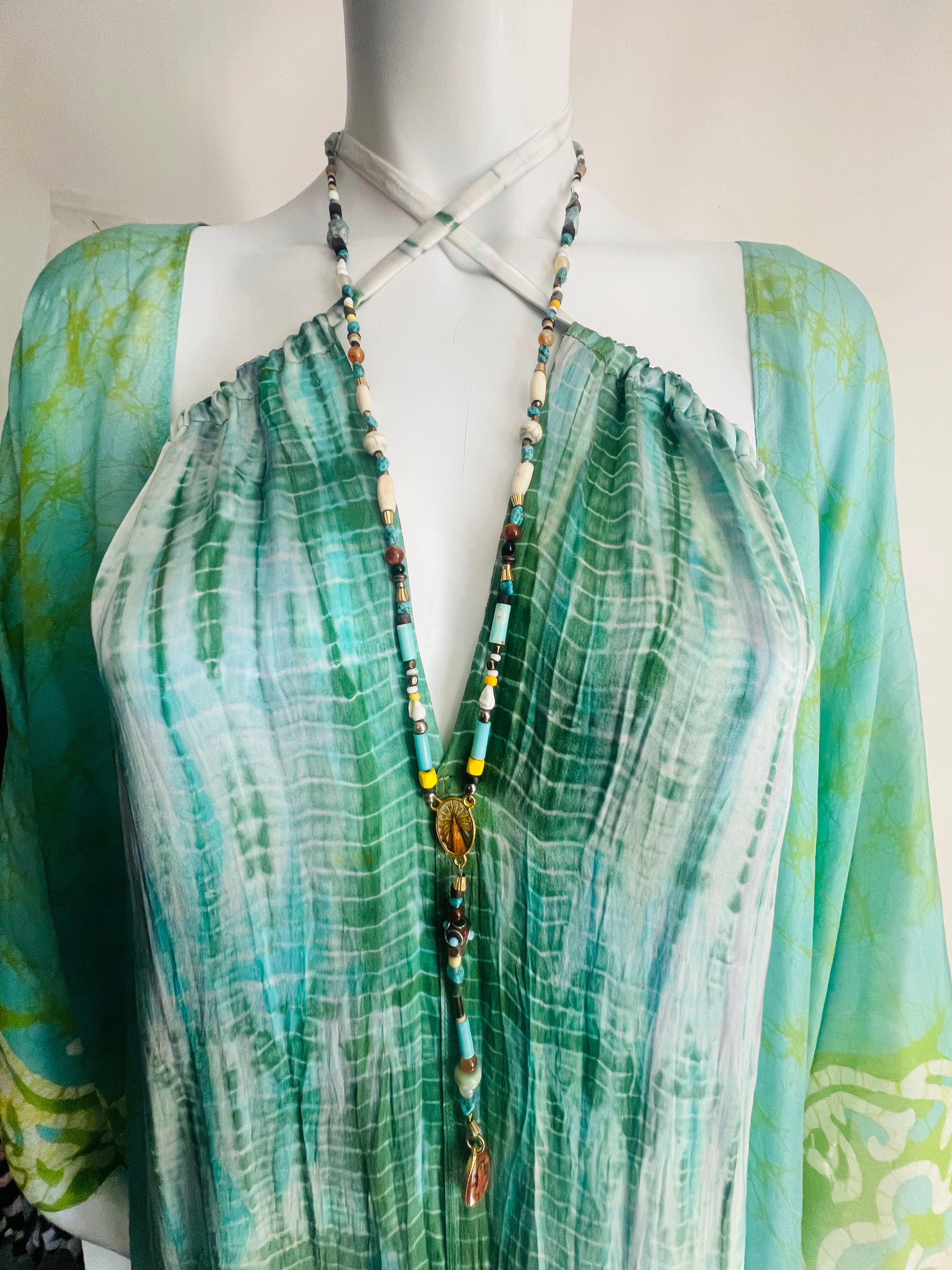 This is a whimsical design incorporating mixed beads and Buddha charms in a rosary configuration.